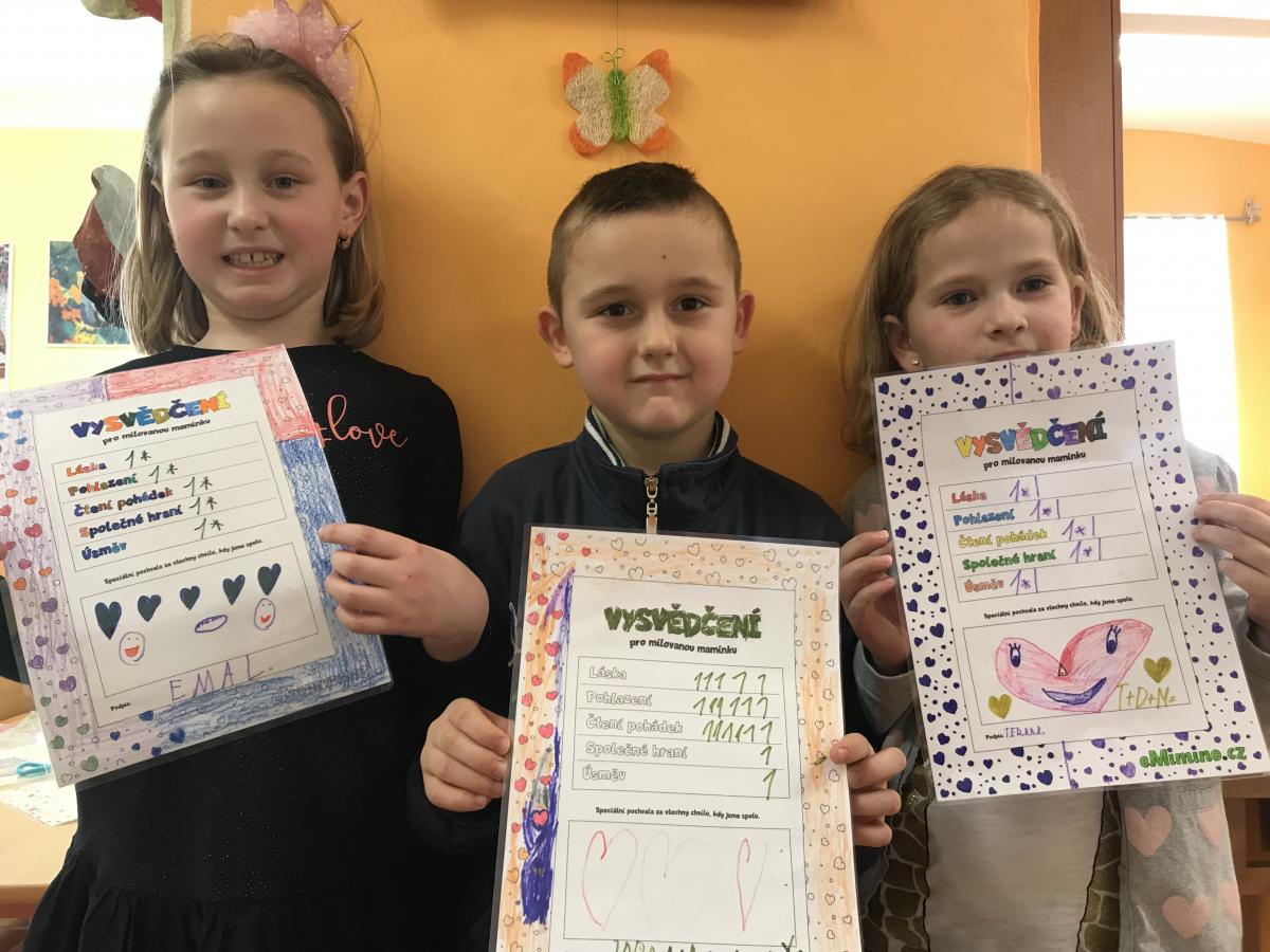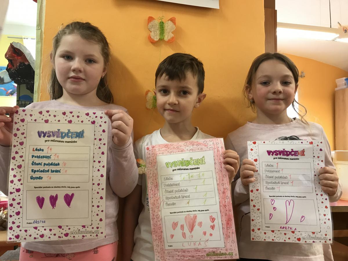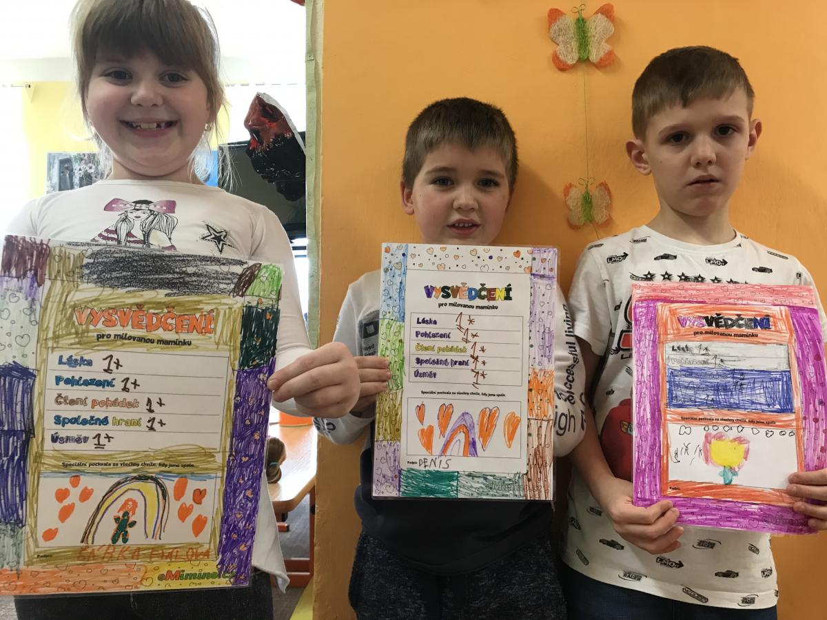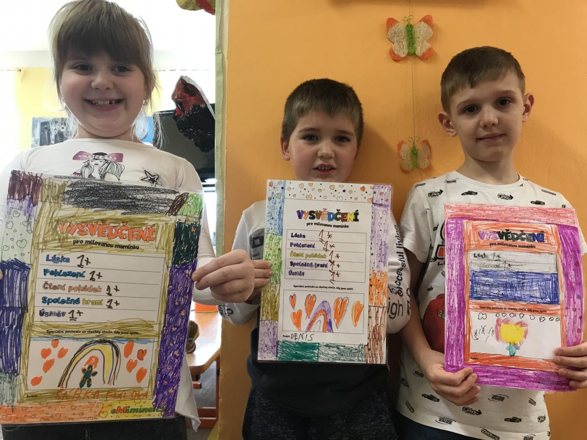 V pololetí dostaly vysvědčení nejenom děti, ale i naše maminky, kterým ho samy děti vyrobily v družince.