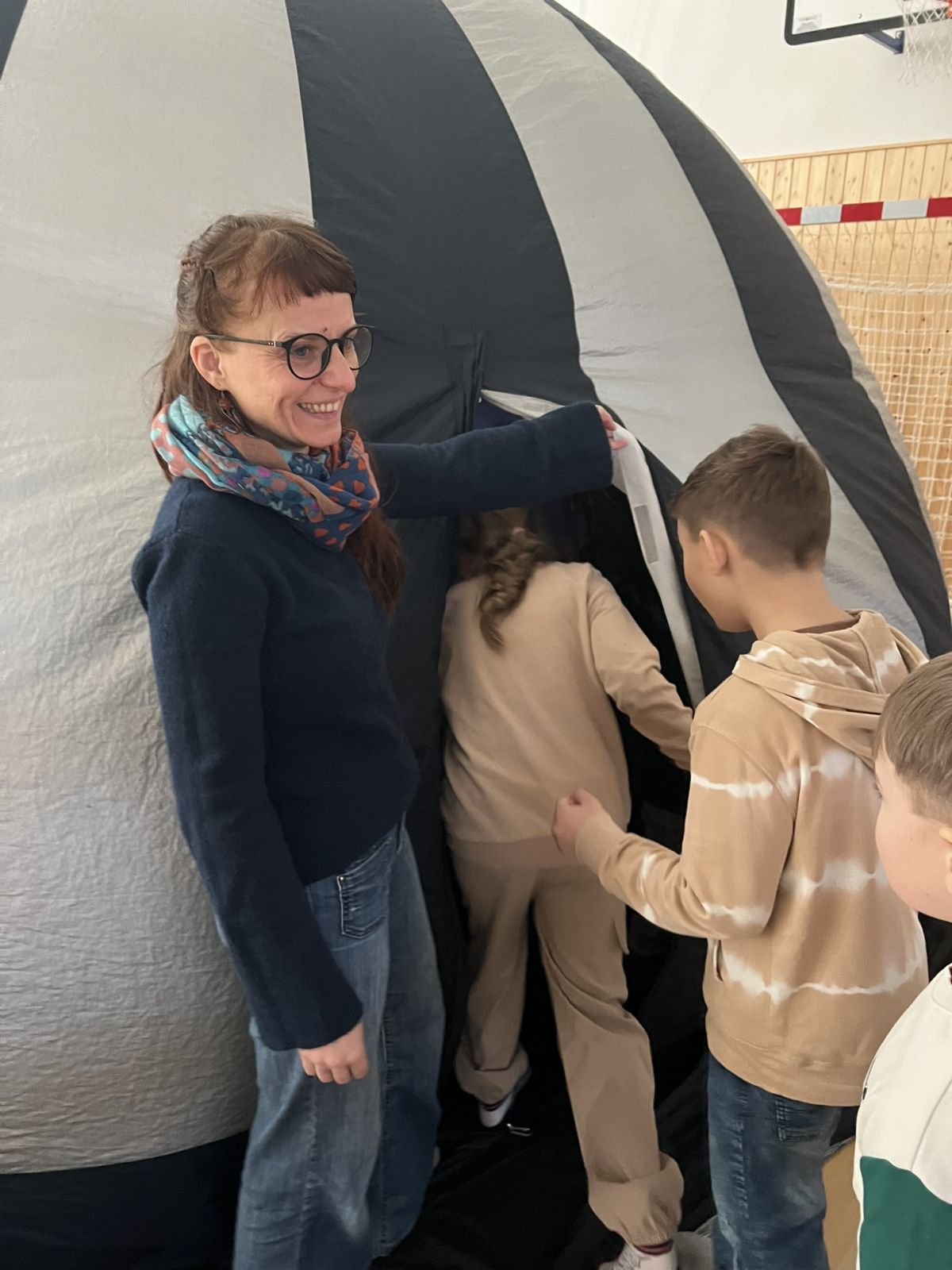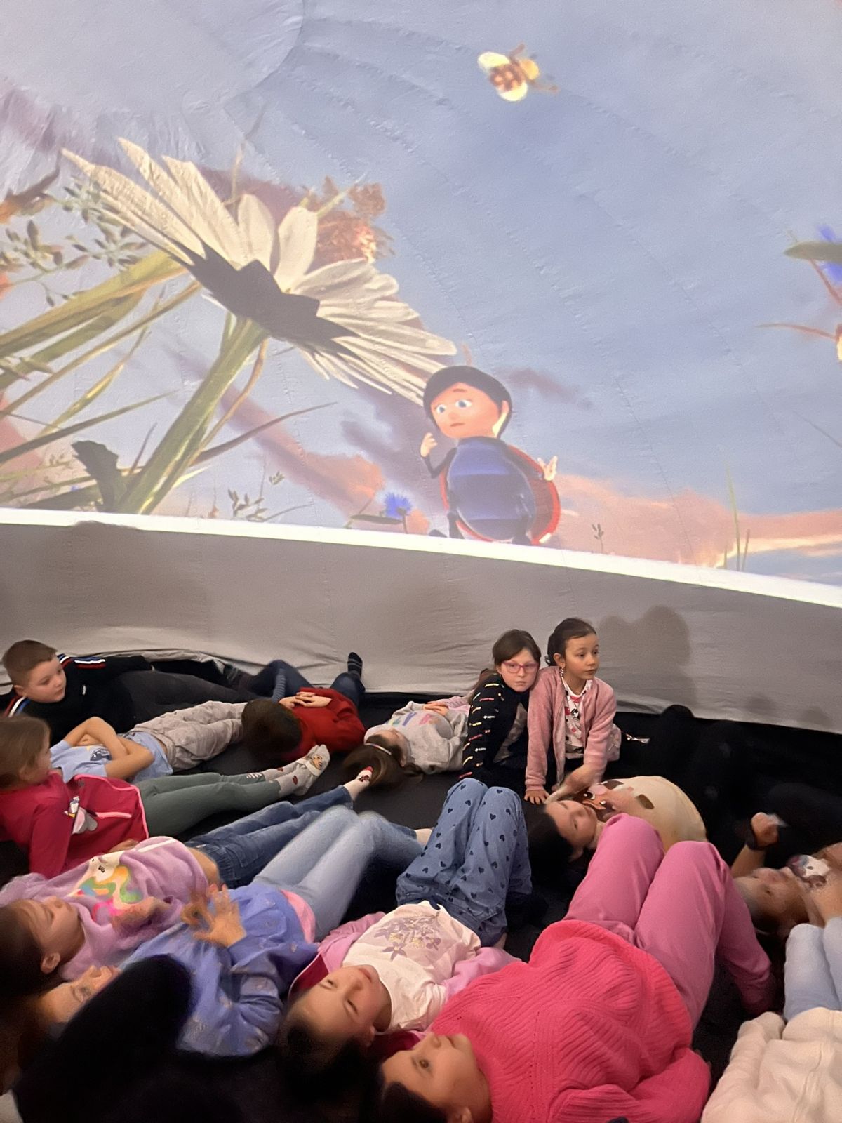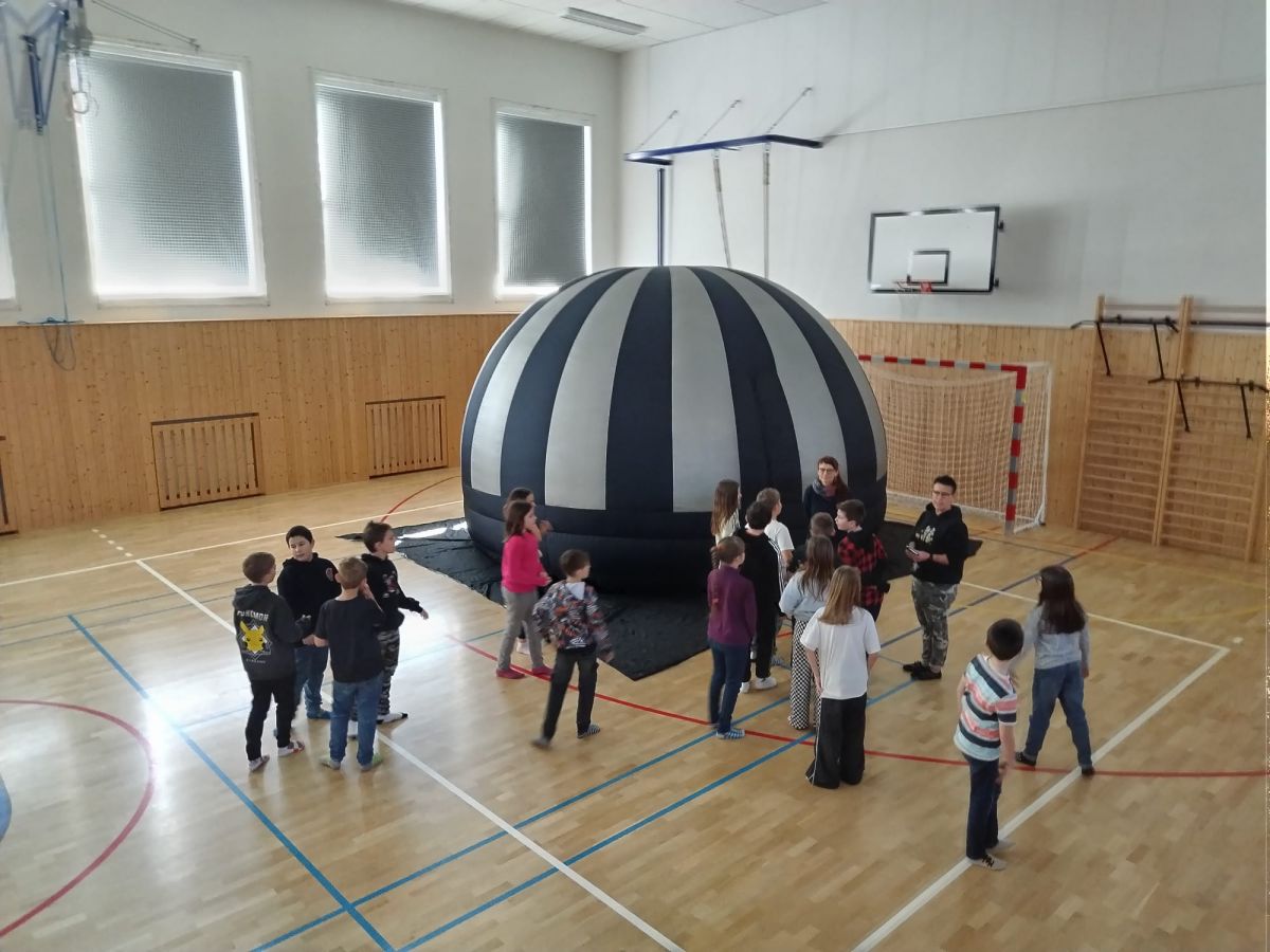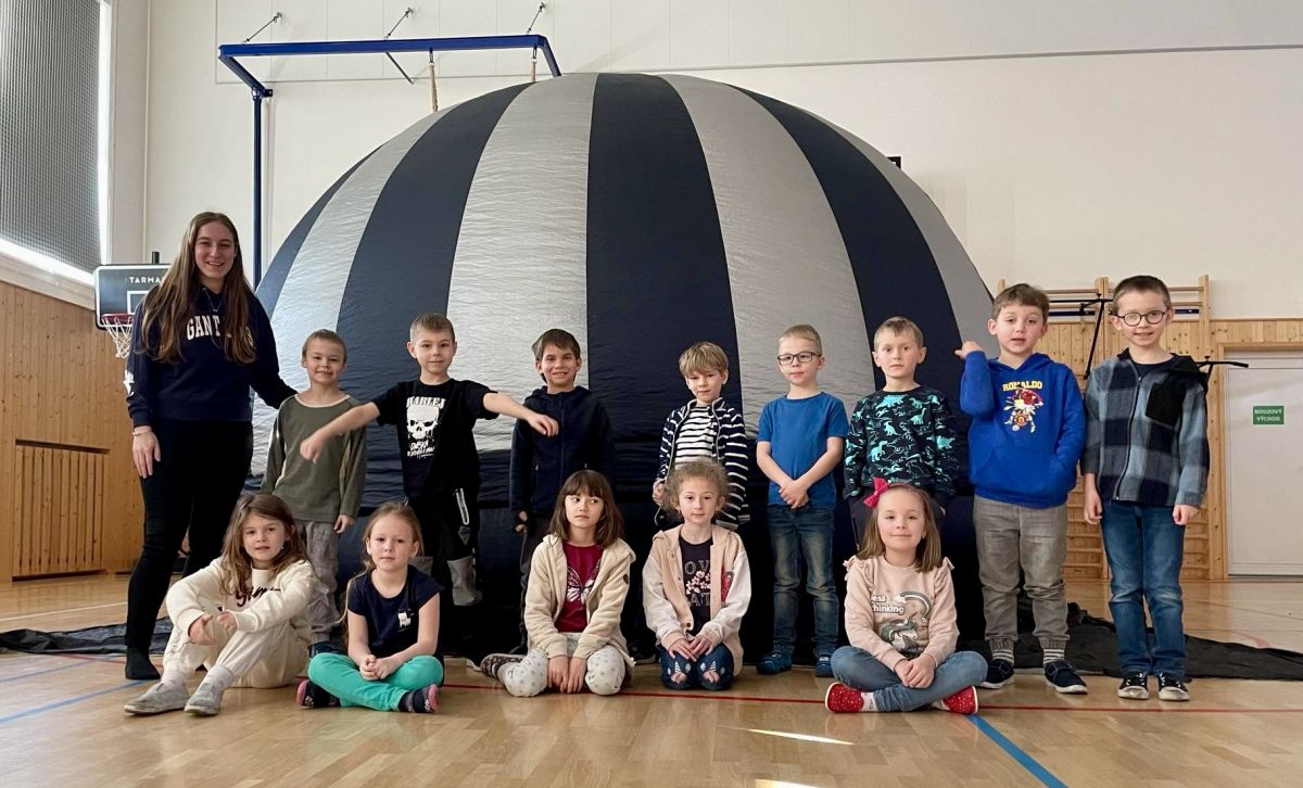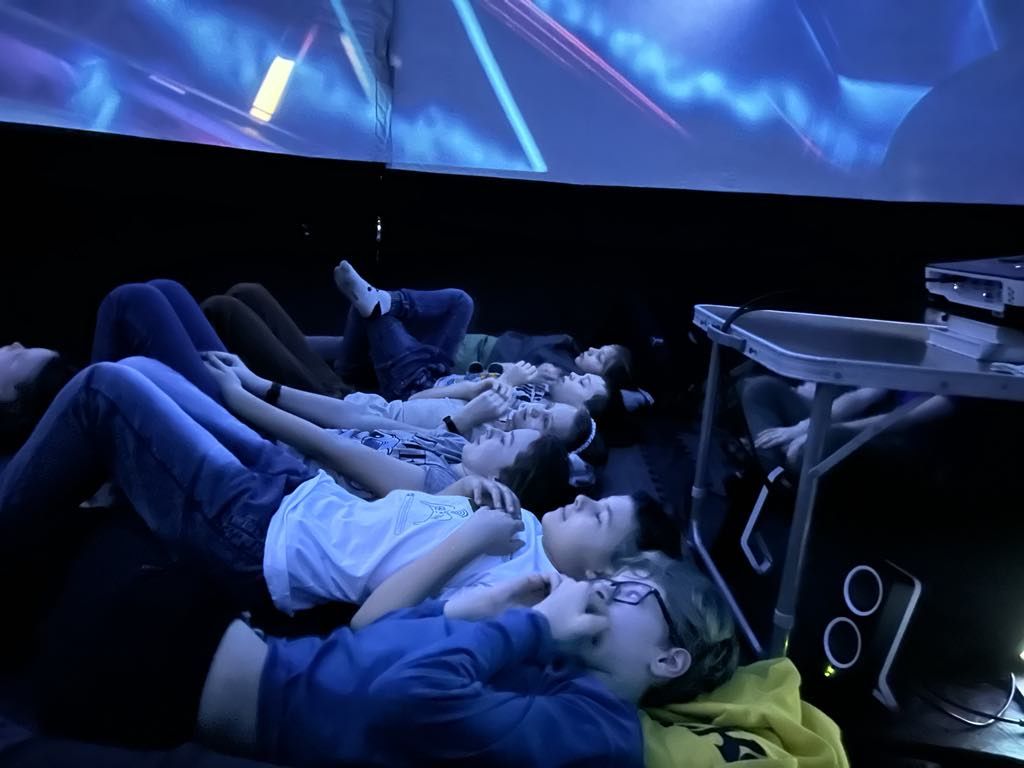 Všechny naše žáky čekal začátkem března nezapomenutelný zážitek – sférické kino. Tato inovativní projekční technologie, kterou jsme měli možnost prozkoumat uvnitř mobilní kopule, nám otevřela dosud nepoznaný svět působivých vizuálních dojmů. Atmosféra byla podobná tomu, co zažíváte v kopuli planetária, a naši žáci se díky této digitální magii stali doslova součástí děje promítaných filmů.