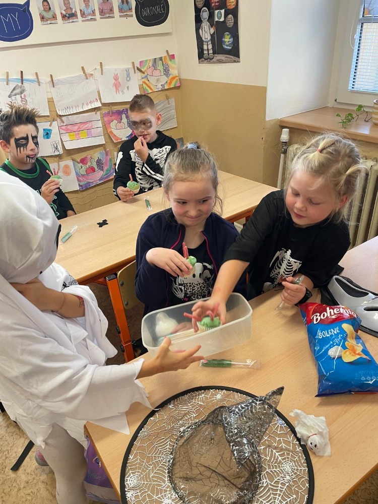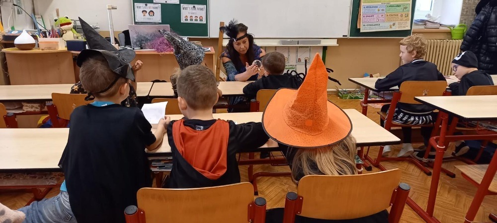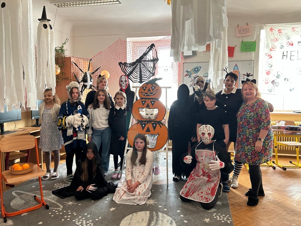 Ve škole jsme prožili projektový den plný strašidel, duchů, kouzelníků, Wednesday, potkali jsme i smrtku s kosou. Ve třídách probíhaly pokusy, kouzla, věštilo se z karet, z křišťálové koule, u třeťáků dokonce padaly kouzelné hlavy. Děti trénovaly soustředění, paměť a pozornost a ve skupinách se podporovaly a pomáhaly si při veselém dni, plným legrace.