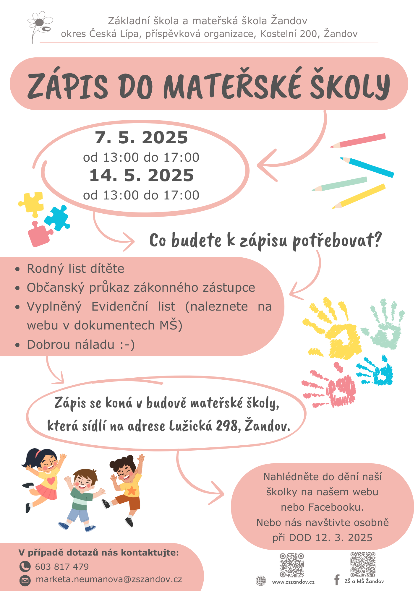 V níže přiložených letácích si můžete přečíst podrobné informace o zápisech do ZŠ a MŠ.